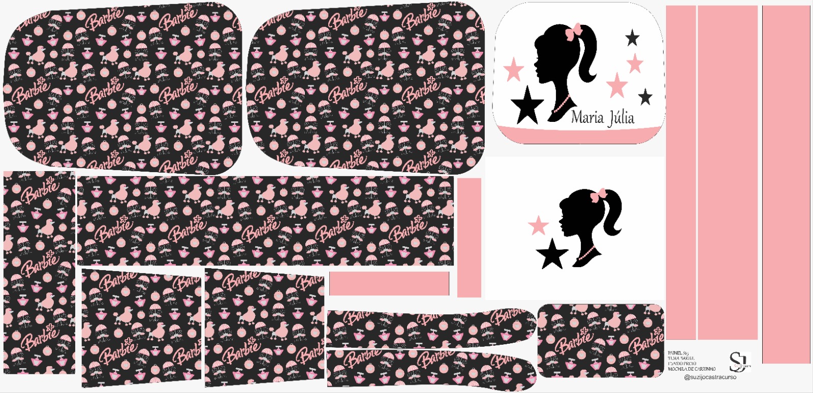 ARTE DO PAINEL DA MOCHILA DE CARRINHO DA BARBIE PRETO COM ROSA 324